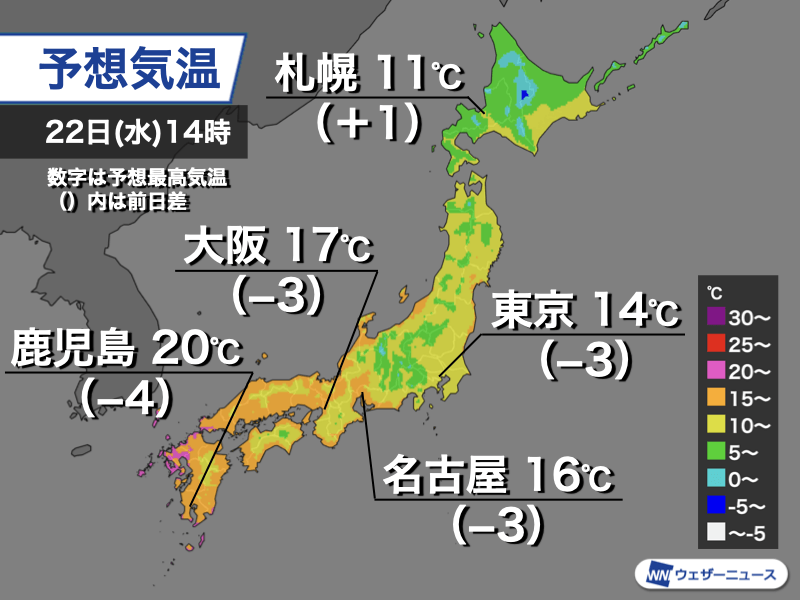 | 84位 | ![]() | 2,951 | 明日の東京は12月上旬並みの寒さ 西日本も気温が上がらず - ウェザーニュース (10月21日) 明日22日(水)は今日よりも気温が上がらない所があります。東京都心は最高気温が15℃に届かない予想で、12月上旬並みの寒さです。厚手の上着や暖房が必要 [weathernews.jp] |