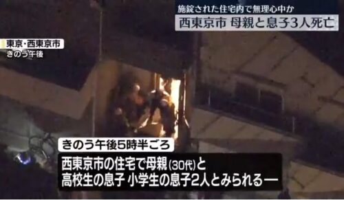 | 20位 | ![]() | 170 | 【西東京】36歳母と息子3人(16・11・9)が死亡 血の付いた斧と包丁発見 失血と窒息か 無理心中の可能性:哲学ニュースnwk (12月20日) 1: デイノコック(茸) [PH] 2025/12/20(土) 08:18:56.11 ID:54rm8OY+0 BE:271912485-2BP(2000) 東京都西東京市の住宅で女性(36)と息子3人が意識不明の状態で見つかった事案で、警視庁によると、4人全員の死亡が確認され |