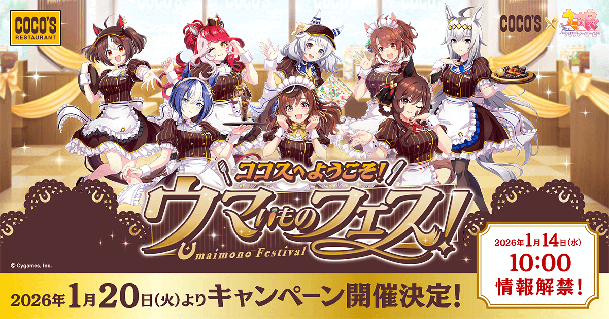 | 26位 | ![]() | 6,635 | ココス×ウマ娘 (12月24日) 「ココス×ウマ娘」開催決定!詳細は2026/1/14(水)10:00 情報解禁予定! [cocos.jp] |