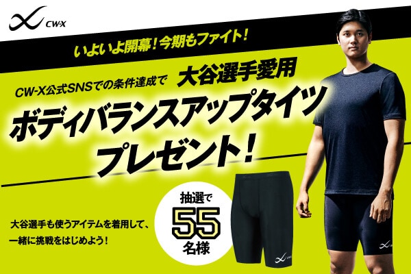 | 65位 | ![]() | 3,874 | 【大谷選手愛用モデルプレゼント企画!!】活躍応援企画第2弾。抽選で55名様に大谷選手が愛用する「ボディバランスアップタイツ」をプレゼント(3 (03月26日) 【大谷選手愛用モデルプレゼント企画!!】活躍応援企画第2弾。抽選で55名様に大谷選手が愛用する「ボディバランスアップタイツ」をプレゼント(3/27-4 [cw-x.jp] |