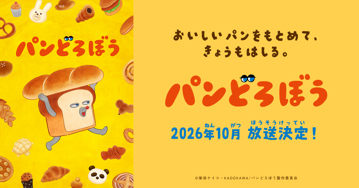 | 16位 | ![]() | 6,730 | アニメ『パンどろぼう』公式サイト (12月23日) シリーズ累計500万部を突破の大人気絵本『パンどろぼう』がアニメ化決定!2026年10月よりNHK Eテレにて放送決定 [pandorobo-anime.com] |