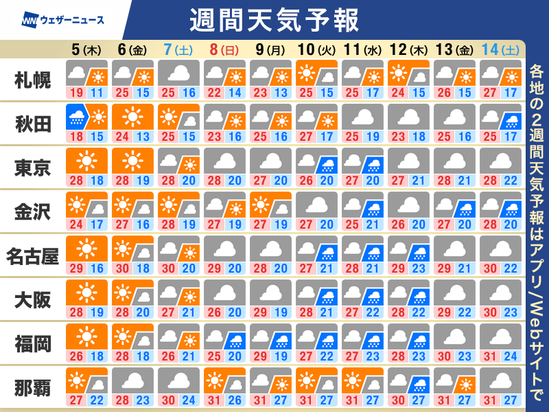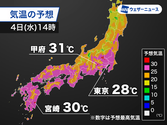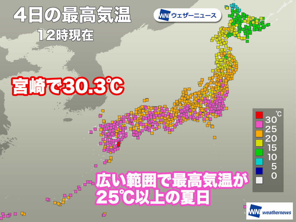 | 16位 | ![]() | 716 | 関東から西は日差し戻り気温上昇 一部では30℃以上の真夏日予想も - ウェザーニュース (06月04日) 今日6月4日(水)は東海から九州にかけては、晴れて青空が広がります。関東や北陸でも雲が少なくなり、日差しが届く見込みです。 関東甲信から東海、西日本では気温が上がり、一部では30℃以上の真夏日が予想されています。昨日との気温差も大きくなるので、体調管理に注意してください。 [we |