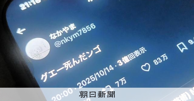 10位 | ![]() | 11,231 | 「グエー死んだンゴ」8文字からの寄付の輪 遺族「がん研究進めば」:朝日新聞 (10月22日) がん研究への寄付が増えている。きっかけは、今月がんで亡くなった北大生の中山奏琉(かなる)さん(22)が生前、Xに投稿した「グエー死んだンゴ」の8文字 [asahi.com] |