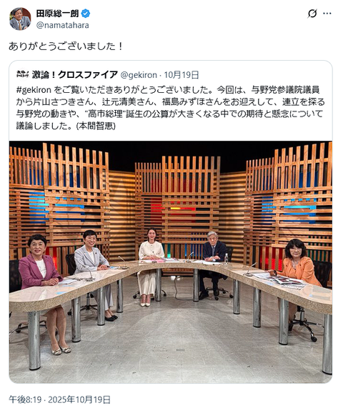 29位 | ![]() | 112 | たかまつなな氏「高市早苗さん、おめでとうございます。日本初の女性総理の誕生、本当に嬉しいです。今後も続き、リベラルな女性総理もうまれやすくなると思います。」 - jnnavi (10月22日) 以下,Xより 【たかまつななさんの投稿】高市早苗さん、おめでとうございます。 日本初の女性総理の誕生、本当に嬉 [japannewsnavi.com] |