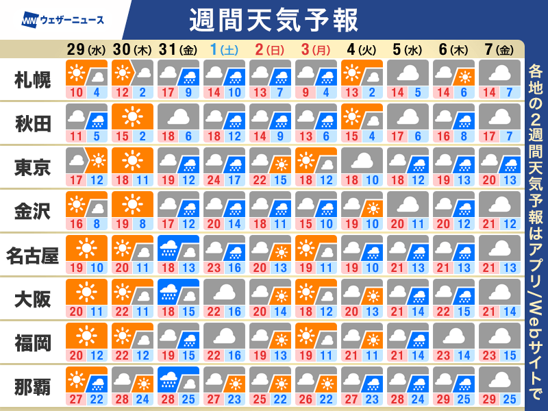 | 26位 | ![]()  | 324 | 週間天気予報 三連休初日は広範囲で雨か 繰り返し寒気が南下 - ウェザーニュース (10月28日) この先の天気のポイントは「週後半〜三連休初日に低気圧が接近」「数日周期で天気変化 寒気も南下」「気温のアップダウンも大きい予想」です。ウェザーニュース [weathernews.jp]  |