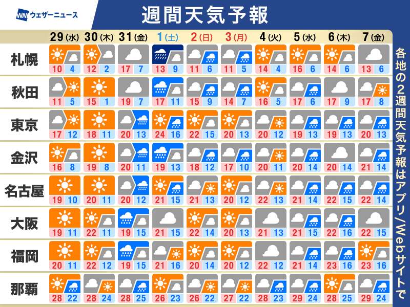| 30位 | ![]()  | 291 | 週間天気予報 ハロウィンから三連休初日は雨 寒暖差も大きい - ウェザーニュース (10月28日) この先の天気のポイントは「ハロウィン〜三連休初日は各地で雨」「数日周期で天気変化 寒気も南下」「気温のアップダウンも大きい予想」です。ウェザーニュースの最新の天気予報を随時確認してください。 [weathernews.jp]  |