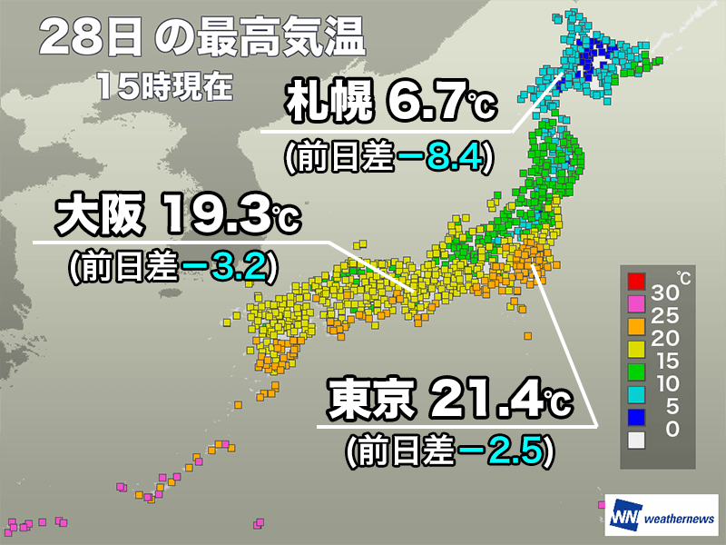 | 27位 | ![]()  | 320 | 強い寒気で北日本中心に寒い一日 明日は朝に冷え込む所多い - ウェザーニュース (10月28日) 今日28日(火)の日本列島は寒気の影響で気温が下がりました。特に北日本は昼間も気温が上がらず、強い風が加わって寒い一日になっています。 [weathernews.jp]  |