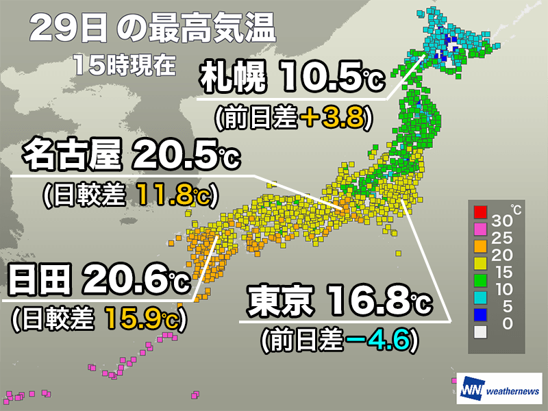| 17位 | ![]()  | 519 | 10月は上〜中旬と下旬で傾向激変 月平均気温は過去2番目の高さに - ウェザーニュース (10月29日) 10月の日本の気温は上旬〜中旬と下旬で一変しました。1か月の平均気温の偏差は+1.6℃前後になる見通しで、昨年に次ぐ過去2番目の高さになる見通しです。 [weathernews.jp]  |