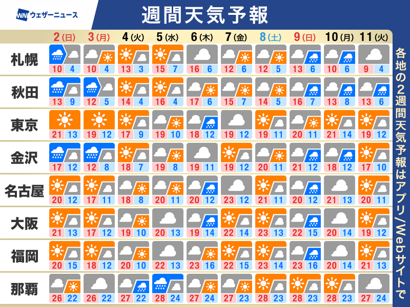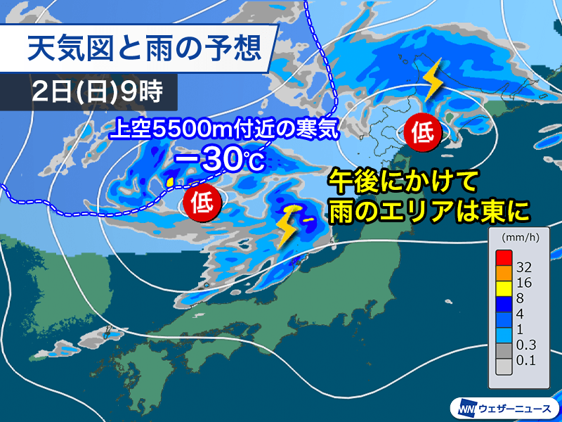 | 8位 | ![]()  | 789 | 明日11月2日(日)の天気予報 連休中日は関東以西で日差し 北日本や北陸は雷雨注意 - ウェザーニュース (11月01日) 三連休の中日の2日(日)は、関東から西日本の広範囲で日差しが届きます。北日本と北陸は寒気を伴った低気圧の影響で雨が降りやすく、一時的に強まったり、雷やアラレを伴う所がある見込みです。 [weathernews.jp]  |