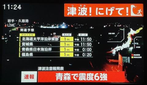 | 23位 | ![]() | 207 | 【現地の状況】青森県付近で震度6強の地震 津波警報が発令されたサイレンの様子12月8日 #地震 #青森 #北海道 #津波 #津波警報 : ニュース速報あれこれ総合 (12月08日) 『うちは八戸の山側高台ですが、湊側の人はすぐ避難してね。夜だから色々各家の中で物が倒れてるみたい。電話したらかなり揺れがでかかったようで、本棚と大型TVが倒れたけど、電気は通ってるから大丈夫とのこと。』『こっち凄く揺れた!それに長い間揺れてたサイレン鳴りま [livedoor.j |
