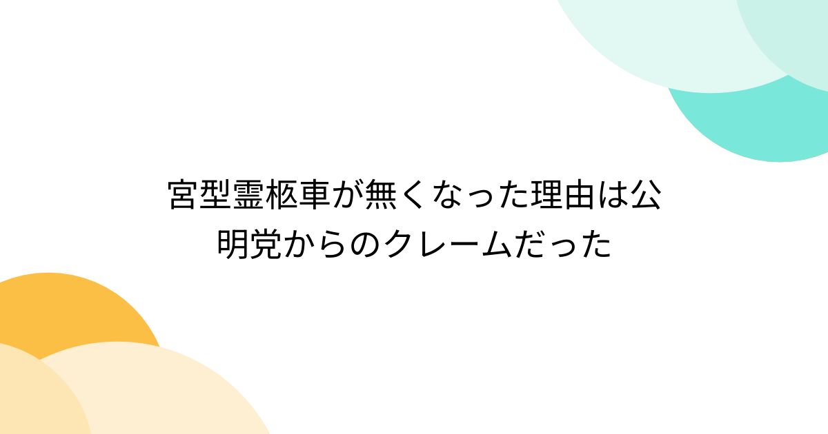 | 20位 | ![]() | 282 | 宮型霊柩車が無くなった理由は公明党からのクレームだった - posfie (12月08日) なるほどそう言うことか [posfie.com] |