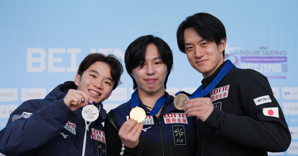 | 15位 | ![]() | 1,019 | 三浦佳生が首位発進 友野2位、山本3位 4大陸フィギュア男子SP [写真特集1/39] | 毎日新聞 (01月24日) 笑顔でスモールメダルを掲げる男子SP1位の三浦佳生(中央)、2位の友野一希(左)、3位の山本草太=中国・北京の国家体育館で2026年1月24日、吉田航太撮影 [mainichi.jp] |