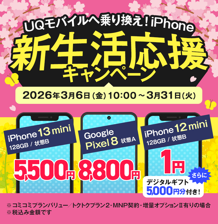 | 64位 | ![]() | 3,559 | UQモバイルへ乗り換え!iPhone 新生活応援キャンペーン|ゲオモバイル 格安SIM・モバイルネット (03月12日) UQモバイルへ乗り換え!iPhone 新生活応援キャンペーン!iPhone 13 mini・Google Pixel 8・iPhone 12 mini [geo-mobile.jp] |