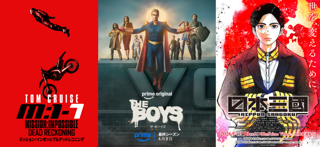 | 3位 | ![]() | 8,038 | Amazonプライムビデオ2026年4月新着配信作品まとめ。『真田丸』『ウルルン滞在記』『28年後...』『北斗の拳』など (03月31日) 大河ドラマ『真田丸』や『世界ウルルン滞在記』などの国内作品に加え、『ミッション:インポッシブル/デッドレコニング』や『28年後...』といった海外映画、海外ドラマ『ザ・ボーイズ』最終章が見放題に追加。さらに『北斗の拳 -FIST OF THE NORTH STAR-』や『日本三國 |