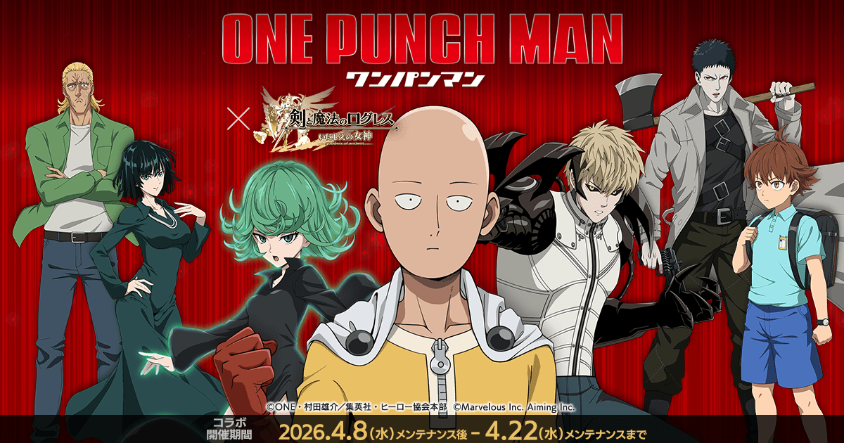 | 30位 | ![]() | 5,445 | アニメ「ワンパンマン」×「ログレス」コラボ開催! | ログレス いにしえの女神公式サイト (04月03日) サイタマたちが登場するストーリークエストでは、1話クリアで限定武器アバター「キングエンジン」がもらえます。 他にもファン必見のコラボ限定アバターなどが [mmo-logres.com] |