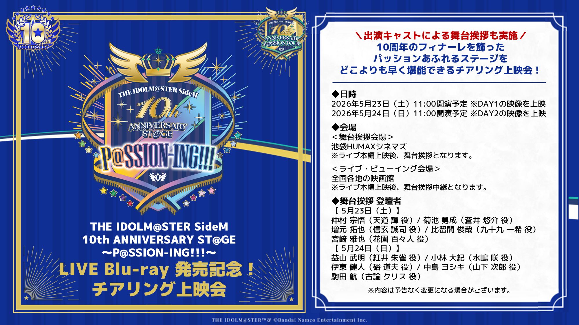 | 19位 | ![]() | 6,767 | 【SideM10th】横浜公演 LIVE Blu-ray 発売記念! 5月23日(土)・24日(日)にチアリング上映会の開催が決定!!池袋H (04月24日) プロデューサーの皆さん、こんにちは!10周年という記念すべき節目に2024年11月から2025年7月にかけて全国5都市を巡った「THE IDOLM@S [idolmaster-official.jp] |