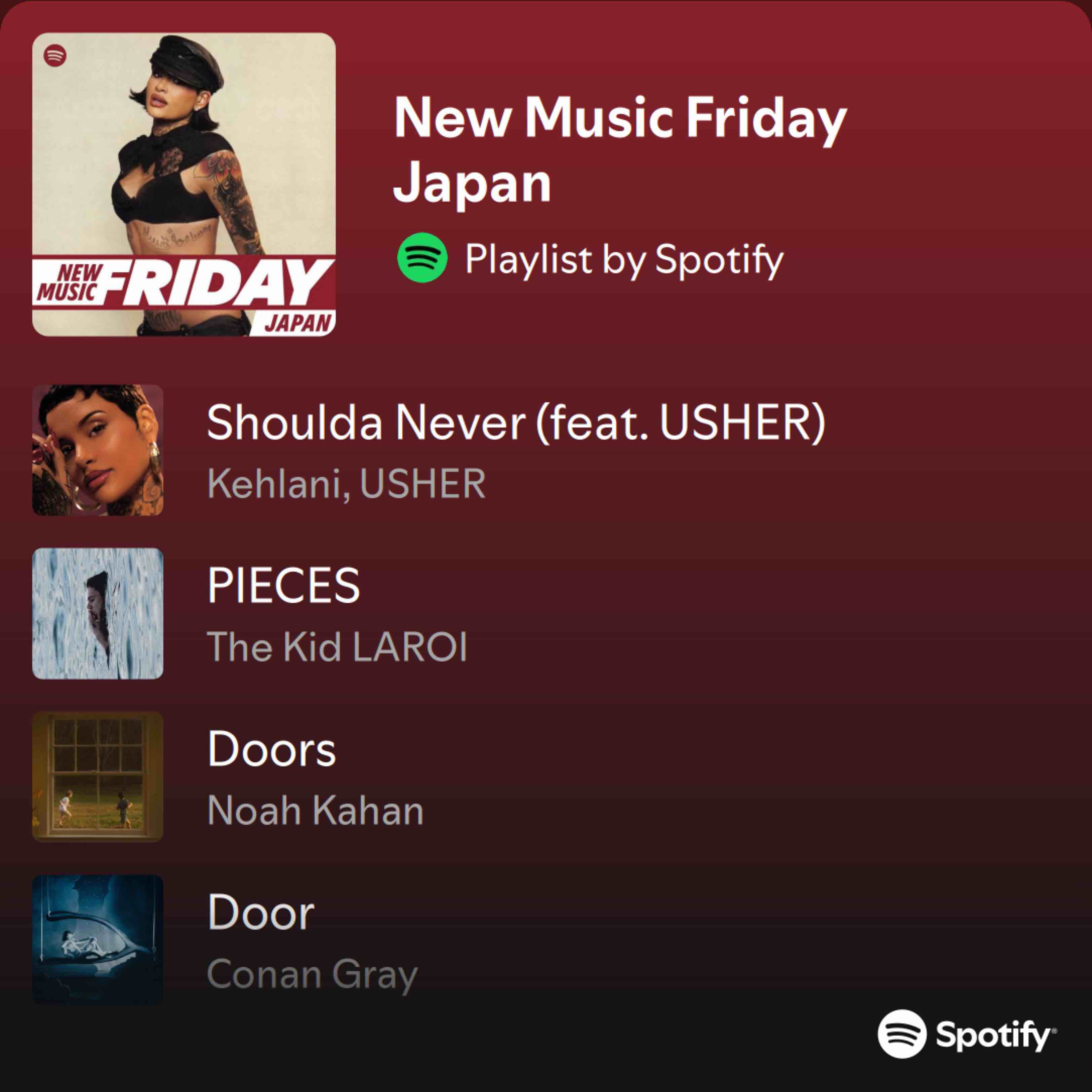 | 49位 | 1,241 | New Music Friday Japan | Spotify Playlist (04月26日) Playlist · New Music Friday Japan · 92 items · 156.9K saves [spotify.com] | |